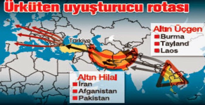 Η γεωστρατηγική θέση της Τουρκίας, σύμφωνα πάντα με την έκθεση της CIA, την καθιστά γεωγραφικό κόμπο για τις νέες χώρες παραγωγής ναρκωτικών της κεντρικής Ασίας, του Αφγανιστάν, του Πακιστάν, που διακινούν τα ναρκωτικά από τον Περσικό κόλπο προς την Τουρκία και στη συνέχεια με την βοήθεια της οργανωμένης τουρκικής μαφίας προς την Δύση.