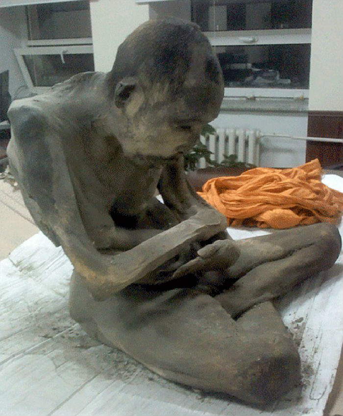 Το σώμα της μούμιας βρίσκεται στη στάση του λωτού, στάση βαθέος διαλογισμού δηλαδή. Η μούμια βρέθηκε χθες στην επαρχία Songinokhairkhan της Μογγολίας και ήταν καλυμμένη από βοοειδές δέρμα.